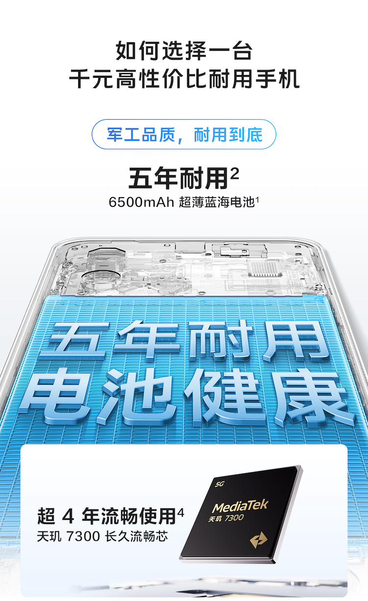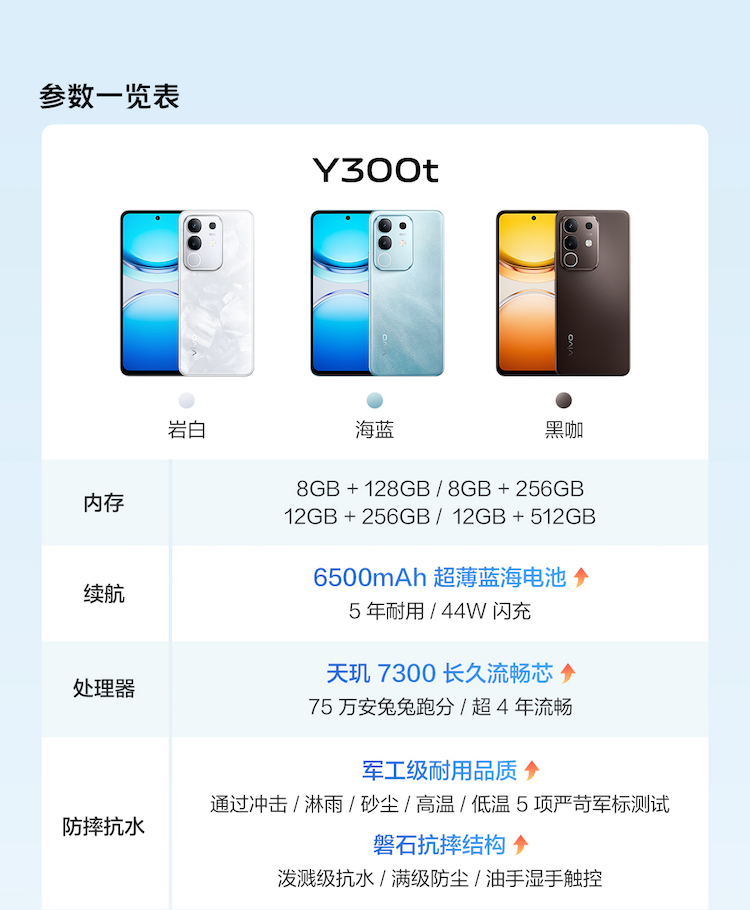 vivo Y300t手机5G轻薄6500毫安时44W闪充大内存天玑7300 8+128