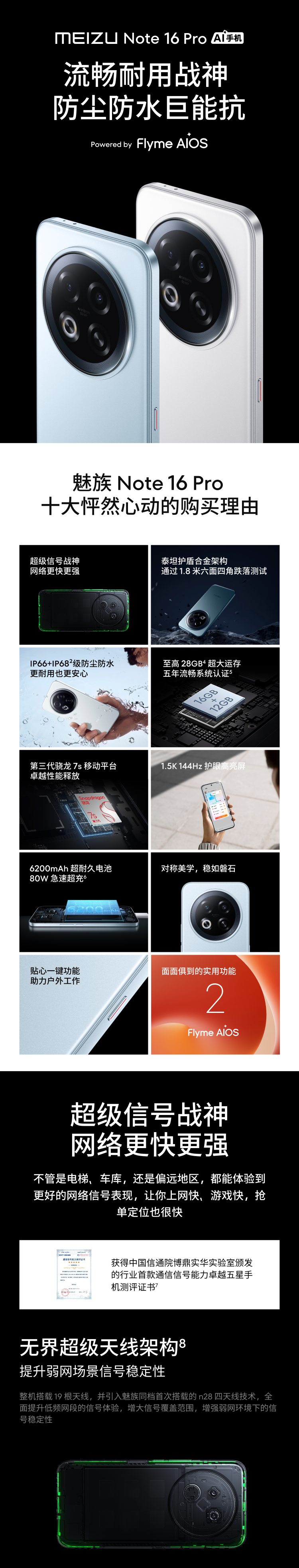 魅族Note16 AI手机新品官方旗舰店6600mAh持久续航国民严选流畅战神紫光展锐 8+128
