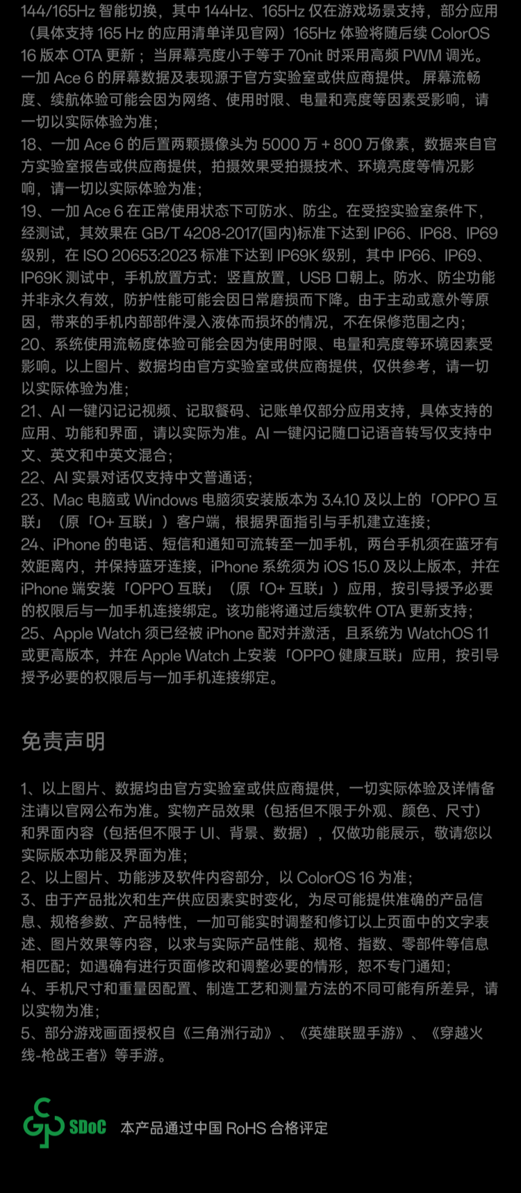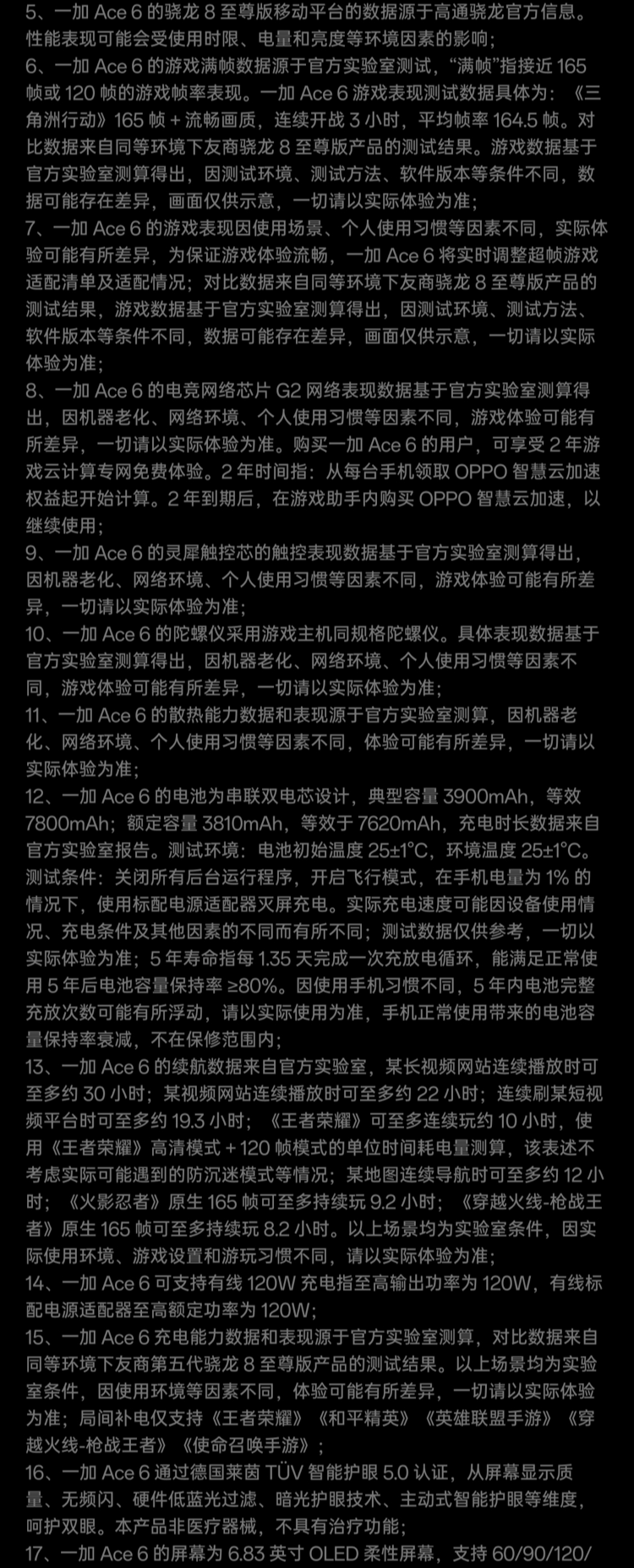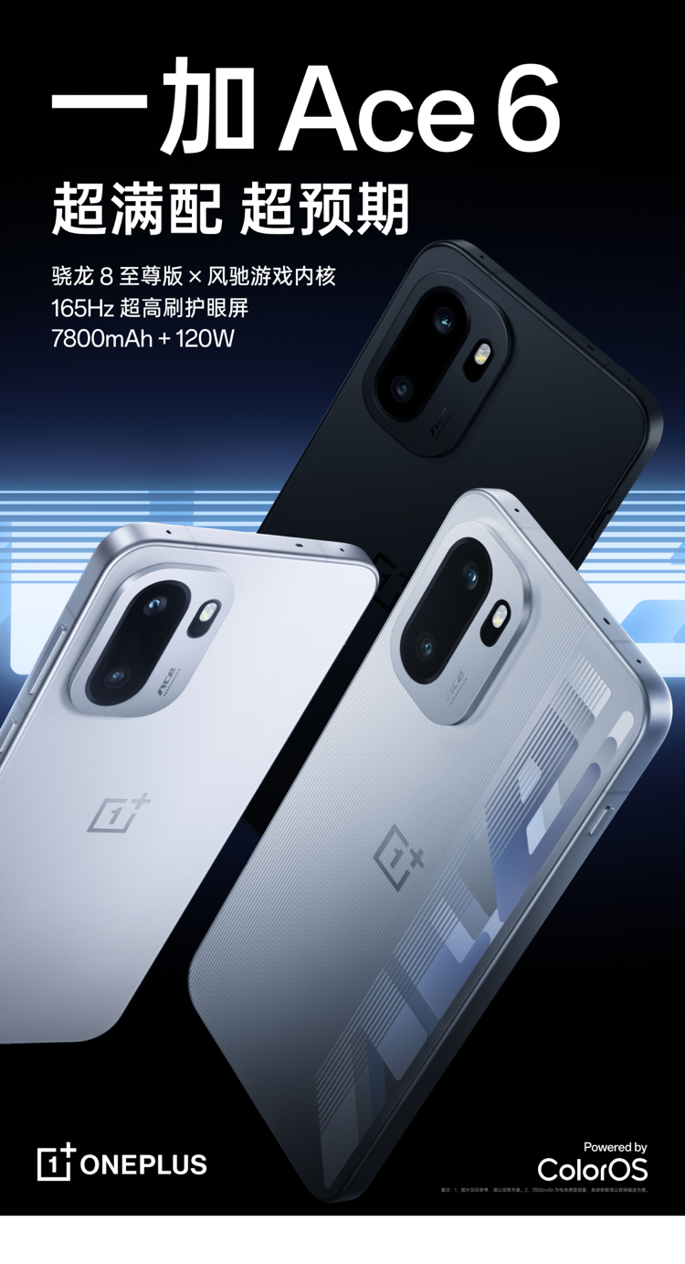 OPPO 一加 Ace 6 新品上市超满配超预期 骁龙8至尊版性能游戏AI手机