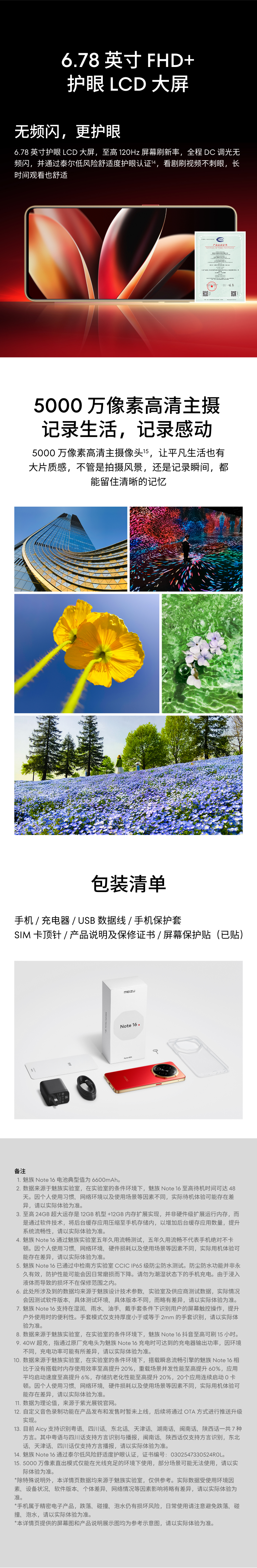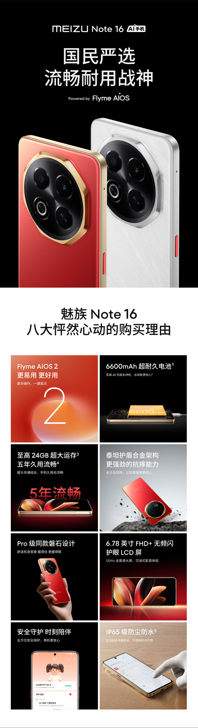 魅族Note16 AI手机新品官方旗舰店6600mAh持久续航国民严选流畅战神紫光展锐 8+128